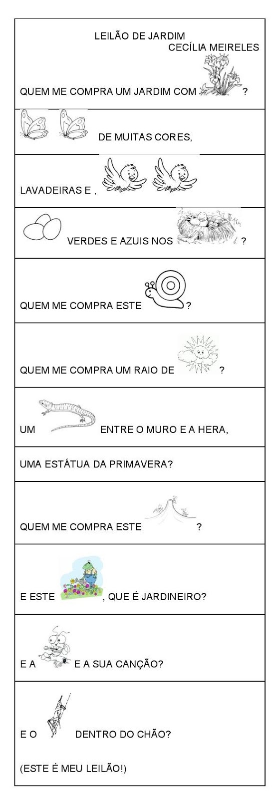 - Poema "Leilão de Jardim" para trabalhar com a leitura memorizada;